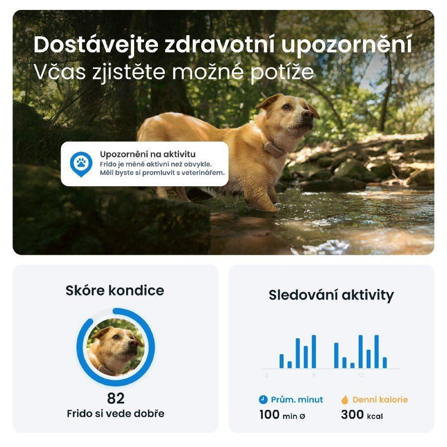 GPS tracker Tractive vás informuje, jak moc se váš pes pohybuje, spí a štěká. Můžete nastavit cíle pohybu, kontrolovat Skóre kondice a porovnávat svého psa s jinými plemeny.