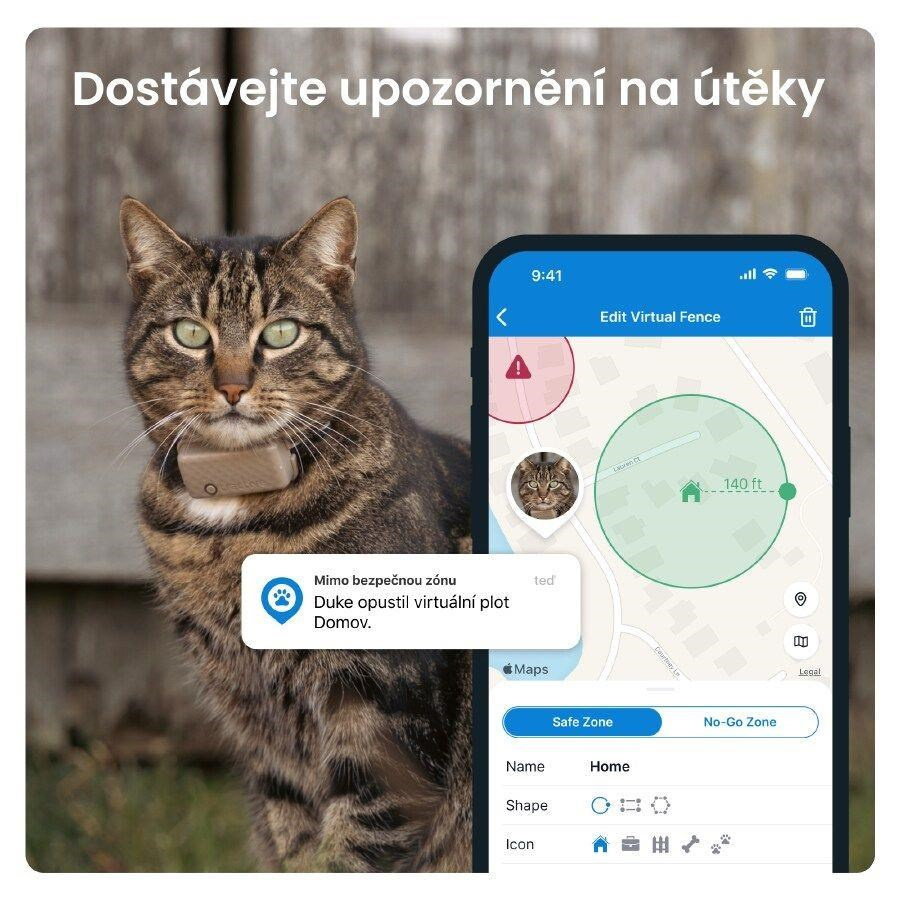 Pomocí funkce Virtuální ploty GPS obojku pro kočky můžete nastavit bezpečné a zakázané zóny a dostávat upozornění, pokud kočka do některé z nich vstoupí nebo ji opustí. Sledujte její území a objevte její oblíbená místa díky nejnovější technologii sledování koček.