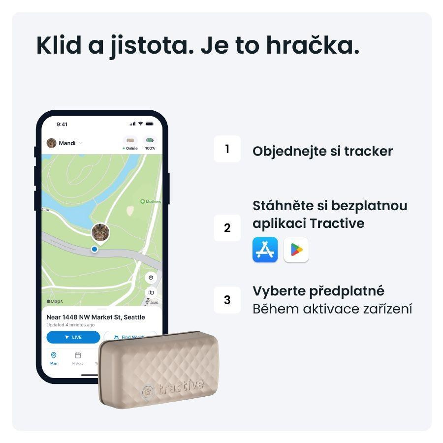 *Ve všech zemích, kde Tractive funguje. Je nutné připojení k mobilní síti. **Cena s předplatným na 2 roky a jednorázovou platbou předem. Ceny se mohou změnit. Nejnovější informace najdete na adrese tractive.com/plans.