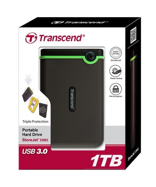 Popis TRANSCEND externí HDD USB 3.0 StoreJet 25M3S, 1TB, Black (SATA, Rubber Case, Anti-Shock)