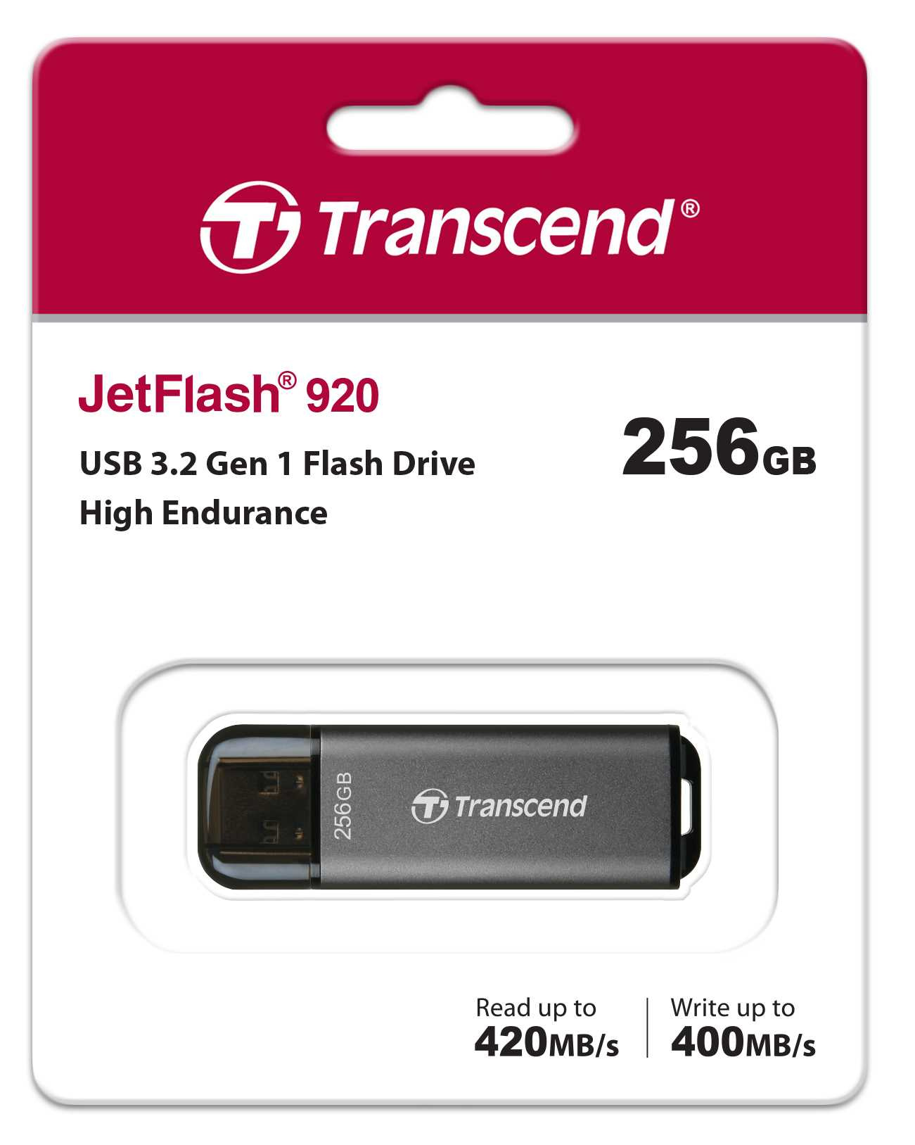 Popis TRANSCEND Flash Disk 256GB JetFlash®920, TLC, USB 3.2 (R:420/W:400 MB/s) černý