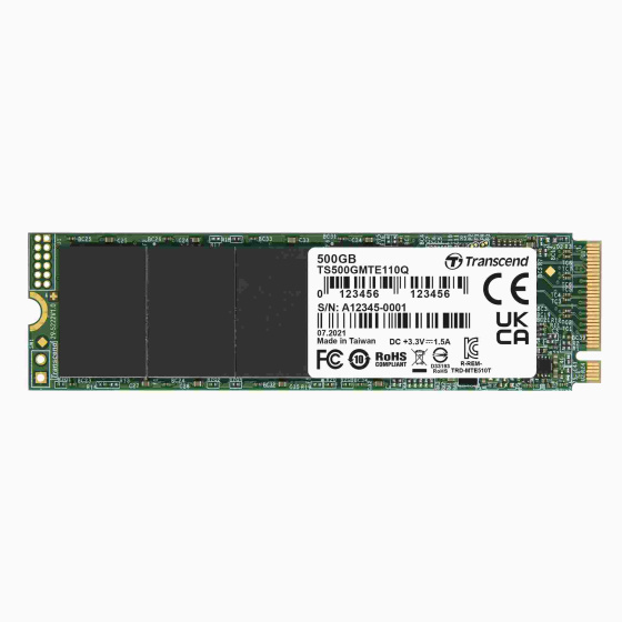 Transcend's PCIe SSD 110Q follows NVMe 1.3 and utilizes the PCIe Gen3 x4 interface, meaning four lanes are used for transmitting and receiving data simultaneously, resulting in compelling performance of up to 2,000MB/s read and 1,500MB/s write.