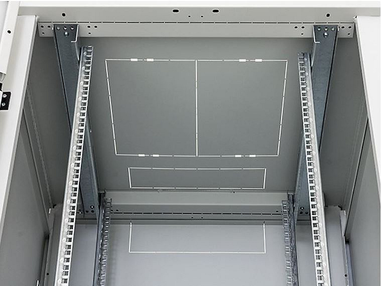U rozvaděčů hlubších než 800 mm dodáváme již v základní výbavě třetí pár vertikálních lišt pro montáž technologie. Díky svému otevřenému profilu neomezují instalaci hlubších zařízení.