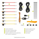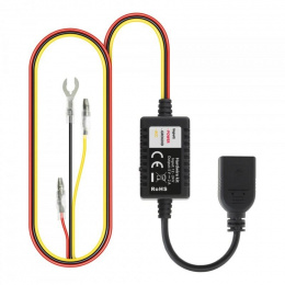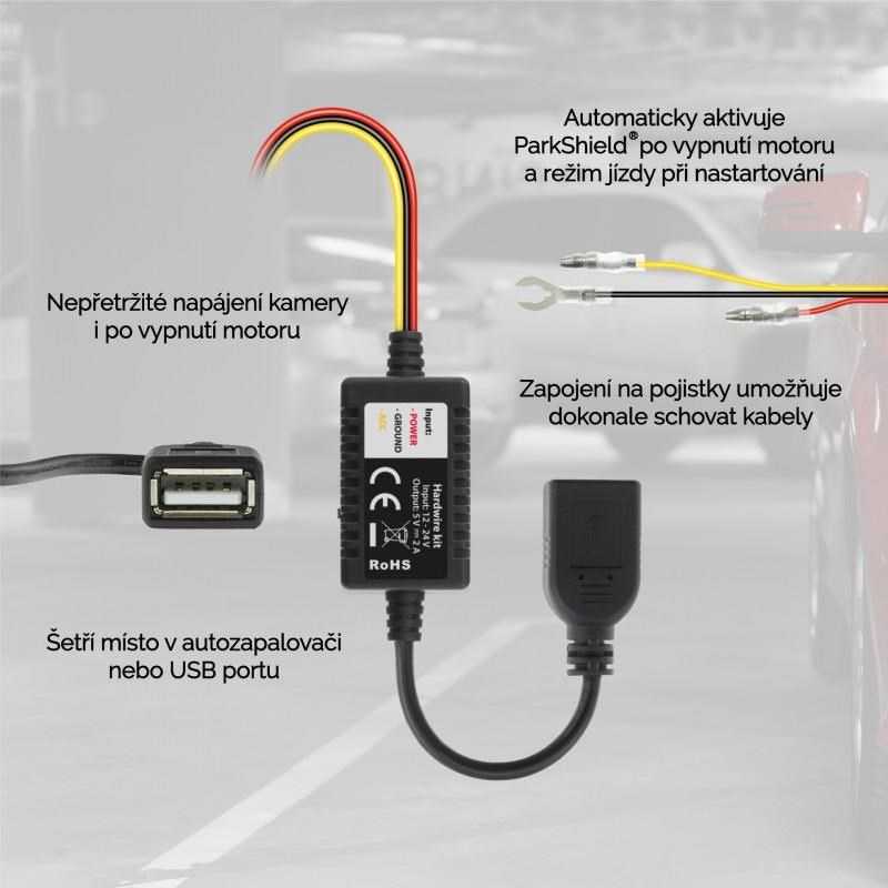 Sada obsahuje všechny potřebné komponenty pro snadné připojení k pojistkové skříňce jakéhokoli vozidla a umožňuje instalaci palubní kamery bez nutnosti použití 12V zásuvky. Stačí zapojit příslušný kabel s pojistkovým kohoutkem do pojistkové skříňky, čímž kamera získá vlastní napájení. Kabel je vybaven modrým LED indikátorem, který ukazuje, kdy je k dispozici napájení a kdy je kamera připojena. Vestavěný omezovač minimálního napětí chrání baterii vozidla před vybitím, pokud je připojen ke stálému napájení. V případě připojení k napájení řízenému zapalováním se kamera automaticky zapne a začne nahrávat při otevření nebo nastartování vozidla. Sada je kompatibilní s napětím 12–24 V, takže je vhodná pro osobní i nákladní automobily. Celková délka kabelu je 5 metrů, což umožňuje jeho snadné skrytí a nenápadnou instalaci.