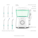 U AquaFloss Station S600 máte na výběr z deseti úrovní tlaku vody, v rozmezí 30-125 PSI, čištění zubů si tak můžete plně přizpůsobit. Požadovaný tlak si nastavíte pomocí kolečka na stanici. Součástí sprchy je 6 speciálních trysek (3× Standard, 1× Orthodontic, 1× Periodontal, 1× Dental Plaque), navržené pro různé potřeby: