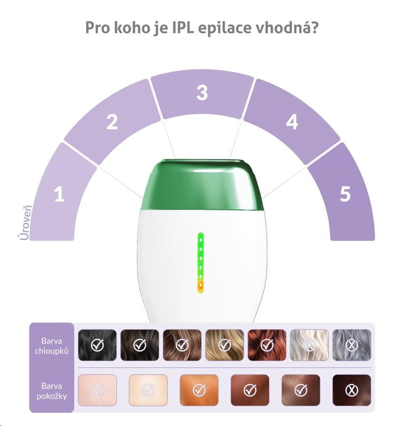 Pomocí ovládacího tlačítka si sami zvolíte požadovanou úroveň světla, která odpovídá vašemu typu pokožky.