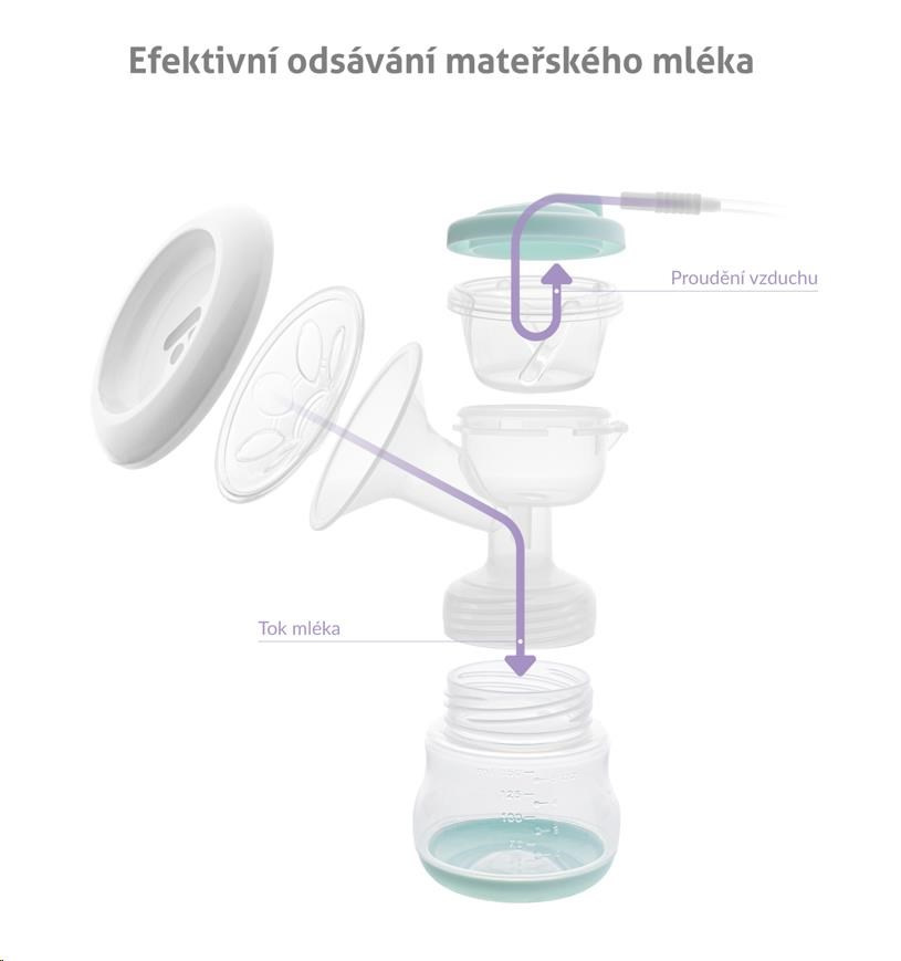 Odsávačka podporuje laktaci a napodobuje přirozený průběh kojení.