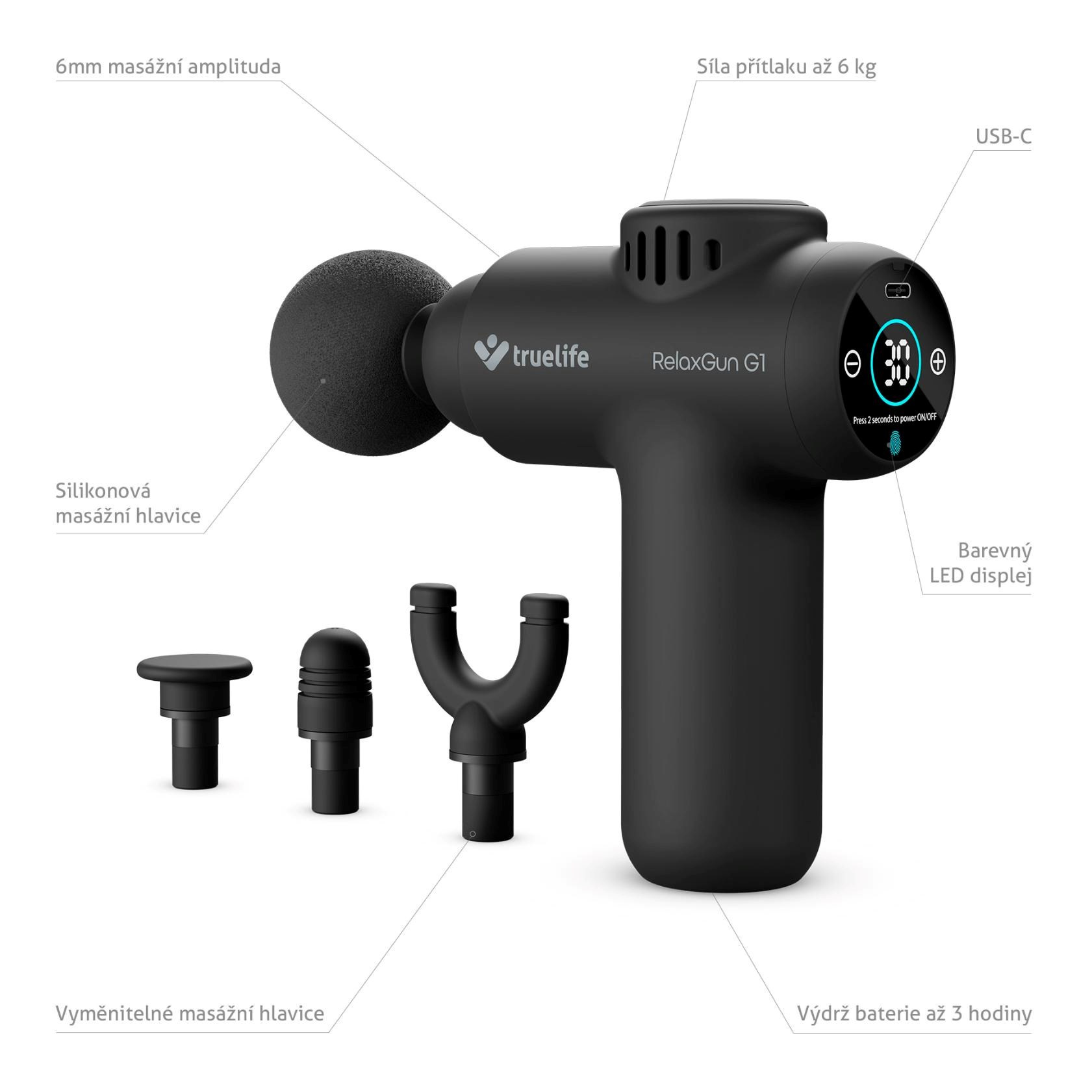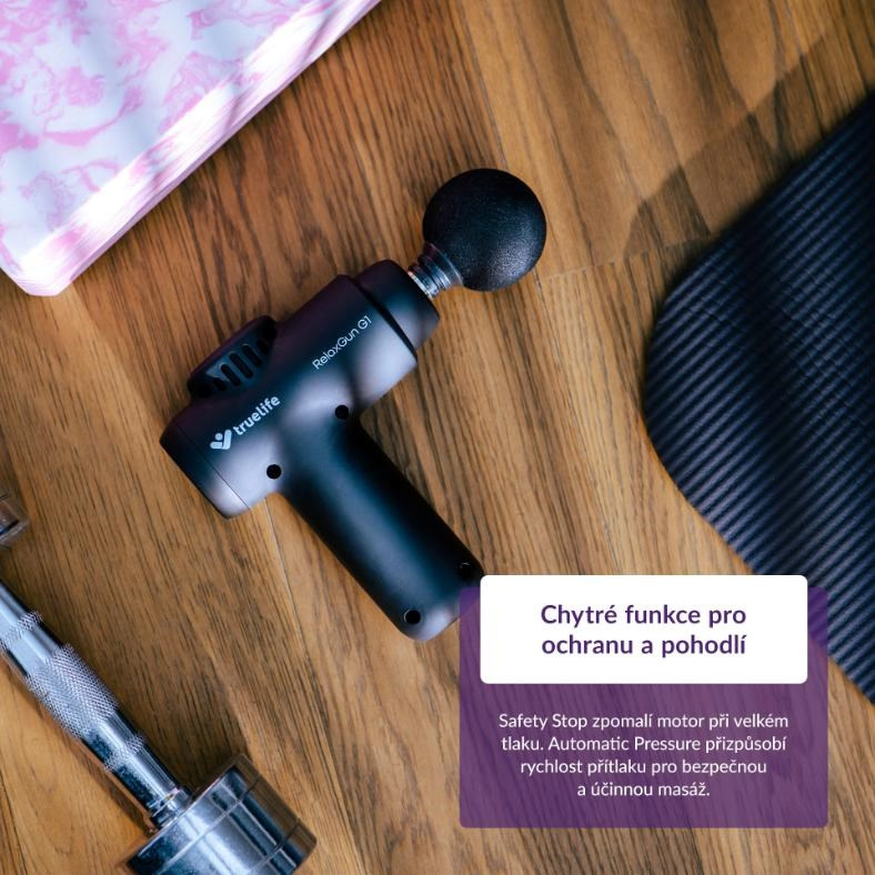 Ať už sportujete na vrcholové úrovni, pracujete jako fyzioterapeut, trávíte většinu dne u počítače, nebo jen hledáte efektivní způsob, jak ulevit unaveným svalům, masážní pistole TrueLife RelaxGun G1 je ideální volbou pro regeneraci i relaxaci. Nabízí 30 úrovní intenzity, přítlak 6 kg a frekvenci až 3200 kmitů za minutu, takže se snadno přizpůsobí vašim potřebám – od jemné relaxační masáže až po intenzivní hloubkovou terapii. Čtyři vyměnitelné silikonové hlavice umožňují cílenou péči o různé části těla, zatímco inteligentní funkce jako automatický frekvenční přítlak a bezpečnostní zastavení (Safety stop) zajistí maximální komfort a bezpečí. S tichým provozem, dlouhou výdrží baterie až 3 hodiny a moderním USB-C nabíjením je TrueLife RelaxGun G1 ideálním pomocníkem doma, ve fitku, v práci i na cestách. Dopřejte si péči kdykoliv potřebujete – pro rychlou regeneraci, úlevu od bolesti, prevenci zranění i podporu celkové pohody.