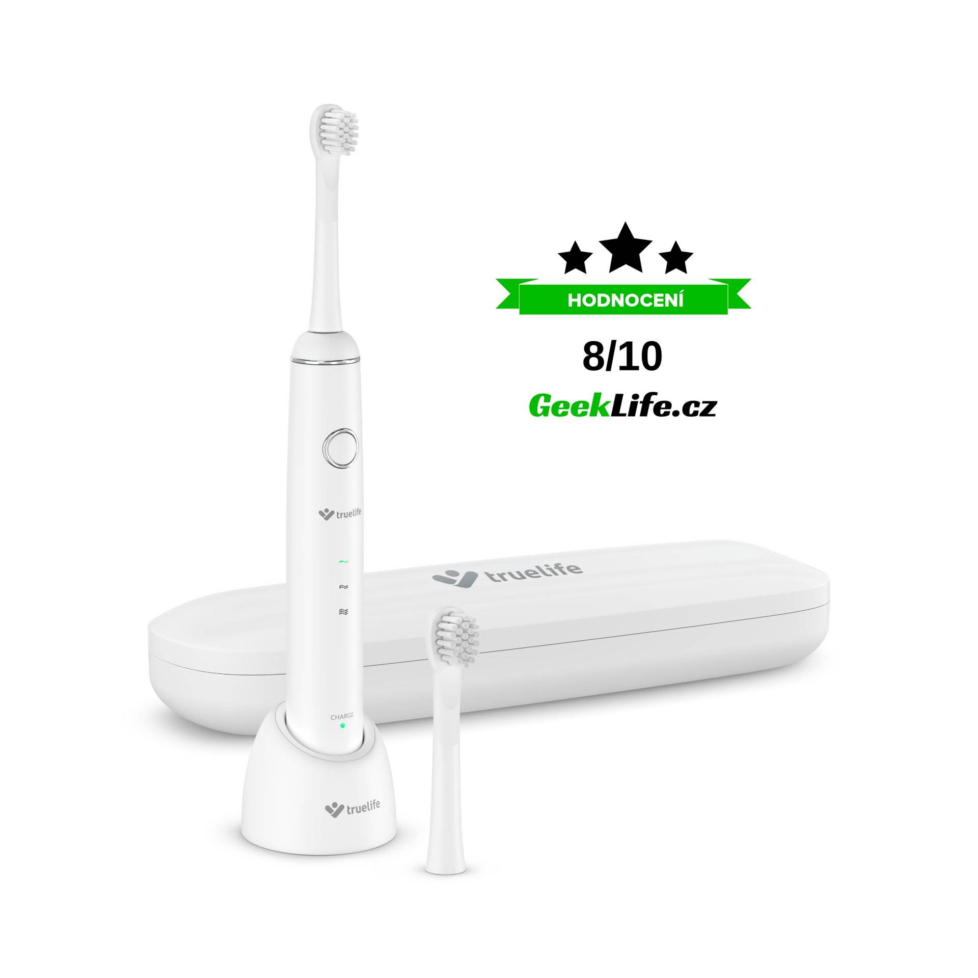 Většina dětí si čištění zubů příliš neužívá, a tak ho často jen tak odbyde. Se sonickým kartáčkem Truelife SonicBrush Junior J100, který je přizpůsoben potřebám dětí od 7 do 14 let, může být ale čištění zubů i zábava. Díky barevným polepům a zábavné výukové video animaci snadno proměníte rutinní činnost v legraci a vaše dítě se bude na čištění zubů těšit. Kartáček je plně přizpůsoben dětským potřebám, tělo i hlavice kartáčku mají vhodnou velikost pro dětská ústa a štětiny kartáčku jsou pro děti dostatečně jemné. Zároveň disponuje sonickou technologií SonicTrue®, díky které zvládne až 56 000 čistících pohybů za minutu a efektivně tak odstraní až 99 % zubního plaku. Kartáček je dobíjecí a baterie má výdrž až 35 dnů, takže s ním můžete pohodlně cestovat nebo ho přibalit dítěti s sebou na prázdniny. Součástí balení je cestovní pouzdro a dvě hlavice Soft.