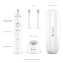 Kartáček pracuje na bázi kmitání a vibrací o frekvenci 56 000 pohybů za minutu a odstraňuje maximum zubního plaku.