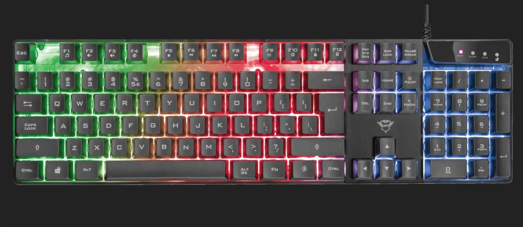 Popis TRUST herní klávesnice GXT 835 Azor Illuminated Gaming Keyboard CZ/SK