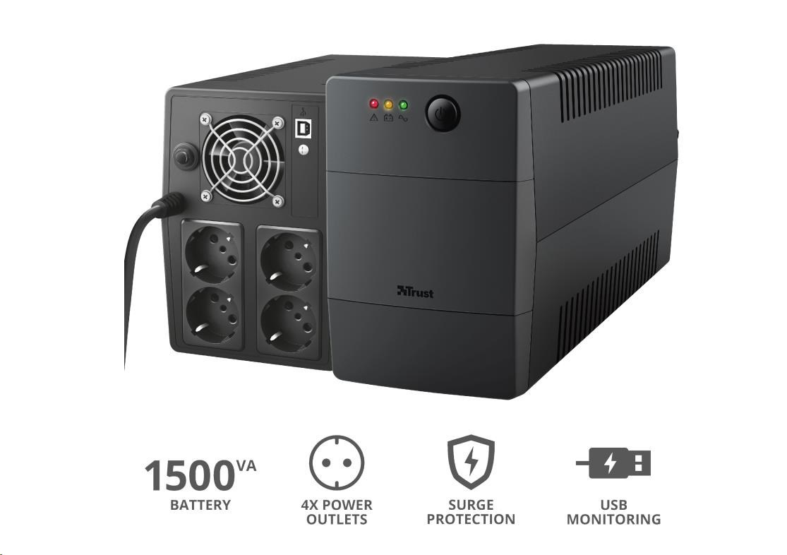 Reliable 1500VA battery back-up UPS with 4 wall power outlets, suitable to power and protect your electronic devices