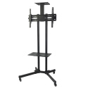 Tv stojan s policemi Fiber Mounts M6C61 Stojan na televize 37-65", nastavení výšky max. 153cm, polička na příslušenství a na kameru, kolečka s brzdou, VESA 200x100 až 600x400, nosnost 50kg Kvalitní podlahový stojan na Tv 37-65" s pojezdovými kolečky s aretací a poličkami na příslušenství a na kameru. Stojan umožňuje nastavit výšku televize a výšku polic. Systém pro vedení kabelů. Podpora VESA standardů 200x100 až 600x400, nosnost 50kg. Barevné provedení černé, záruka 3 roky. Televizní stojan s policemi na příslušenství a na kameru Fiber Mounts M6C61 Technické údaje: nosnost 50kg podporuje VESA standardy 200x100 až 600x400 na televize a monitory s úhlopříčkou 37" až 65" nastavení výšky televize, max. 153cm polička na příslušenství 485x293mm s nastavením výšky, nosnost 5kg polička na kameru, nosnost 3,5kg pojezdová kolečka s brzdou systém pro vedení kabelů kvalitní konstrukce barevné provedení černé záruka 3 roky Tv stojan s poličkami a kolečky Fiber Mounts M6C61 Televizní stojan Fiber Mounts M6C61 podporuje VESA standardy: VESA 200x100 VESA 200x200 VESA 300x200 a 200x300 VESA 300x300 VESA 400x200 a 200x400 VESA 400x300 a 300x400 VESA 400x400 VESA 600x400.