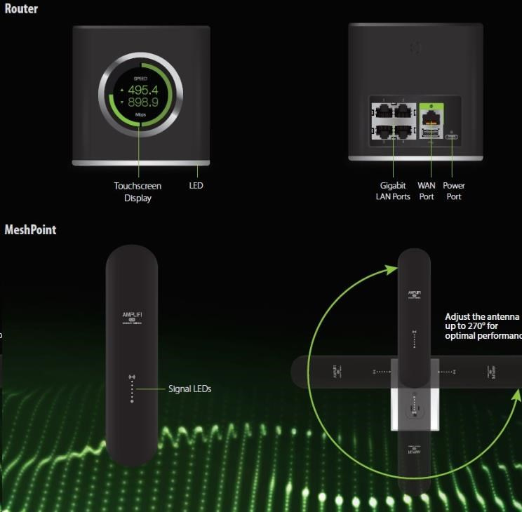 Bezdrátový router se 4 LAN porty (1Gbit) a 1 WAN portem (1Gbit) podporuje bezdrátové standardy 802.11a/b/g/n/ac s modulační rychlostí 450+1300Mbps a vysílacím výkonem 26dB. Vše pak doplňují dva MeshPointy se stejnými bezdrátovými parametry. Díky MeshPointům můžete maximalizovat pokrytí vašeho bytu nebo rodinného domku.