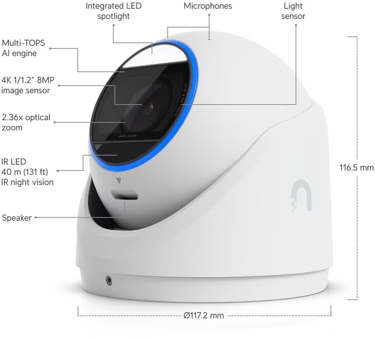 Popis UBNT G6 Pro Turret, UniFi 8MP IP kamera, bílá