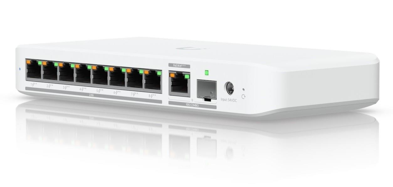 Popis produktu Ubiquiti UniFi Switch Flex 2.5G PoE je kompaktní switch určený pro rozšíření sítě v domácích i kancelářských prostředích, zejména pak pro připojení napájených zařízení. Nabízí 8x 2.5Gbit porty s podporou PoE 802.3af/at/bt (POE++ 60W), které umožňují snadnou integraci zařízení s vyššími přenosovými rychlostmi, jako jsou moderní přístupové body, servery nebo NAS úložiště. Celkový PoE budget dosahuje až 196W v případě napájení DC adaptérem. Pokud je switch napájen pomocí PoE, pohybuje se PoE budget v rozmezí 12W - 57W. Switch podporuje správu prostřednictvím aplikace UniFi Network, což usnadňuje jeho konfiguraci a dohled nad sítí. Jako uplink slouží combo port 10G RJ45 / SFP+. Jednou z jeho klíčových funkcí je podpora napájení přes ethernet, což znamená, že zařízení lze napájet přímo přes síťový kabel pomocí PoE vstupu na uplink portu (90W 802.3bt / POE+++), případně pak pomocí 54V DC / 3.9A adaptéru (adaptér není součástí balení). Přestože je uplink port combo, lze nejen využít jen jeden z portů, ale také využít metalický port pro napájení a optický port pro data. Svým minimalistickým designem je ideální pro umístění na pracovním stole nebo montáž na stěnu. S volitelně dokoupeným kitem je možná montáž na DIN lištu. Je plně kompatibilní s produkty UniFi a umožňuje snadné škálování podle potřeby. Pro správu zařízení je potřeba aplikace UniFi Network v9.0.108 a novější. Obsah balení: • Zařízení • Vrtací šablona • Držák na zeď • Montážní sada Technické parametry Konektory a rozhraní Rychlost LAN:(8) 100/1000/2500 Mbps + (1) 10G RJ45/SFP+ Optické rozhraní:(1) 1/10Gbps Napájení Typ napájení:PoE, DC konektor Typy PoE:PoE-Out + PoE-In PoE budget [W]:196 Max. spotřeba energie [W]:14 Napájení přes konektor/svorkovnici:54V DC Fyzické charakteristiky Provedení:Na zeď, Desktop Ventilátory:Ne Šasi:Plastové Tlačítka:Reset Provozní teplota [°C]:-20 až 45 Šířka [mm]:213 Výška [mm]:34 Hloubka [mm]:99 Obecné Rychlost přepínání [Gbps]:60 Rychlost předávání paketů [Mpps]:44 Software Management:UniFi Network Funkce:L2 Výchozí IP adresa:192.168.1.20, Dynamická z DHCP Výchozí jméno a heslo:ubnt / ubnt.