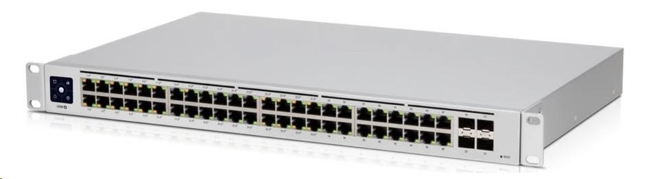 UniFi Switch Pro 48 is a fully managed Layer 3 switch with (48) Gigabit Ethernet ports. (4) 10G SFP+ uplinks offer link aggregation for higher capacity and increased availability.