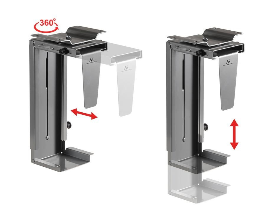Profesionální spolehlivý a bezpečný držák na PC, nastavitelný, materiál ocel, barva stříbrná, nosnost 10kg.Více