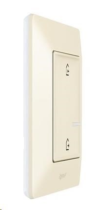 Valena Life with Netatmo bezdrátový ovládač scénářů "doma/mimo domov" (baterie CR2032 a oboustranná lepenka součást balení), zadní strana je zcela plochá (lze montovat na zeď, sklo, nábytek pomocí šroubů nebo oboustranné lepenky), scénáře se nastavují pomocí aplikace Home + Control - barva Béžová, dodáván s rámečkem v barvě Béžová