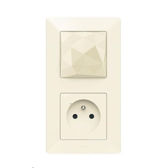 Valena Life with Netatmo startovací kit - nutný pro každou instalaci, obsahuje spínanou zásuvku 230V/16A s měřením spotřeby el. energie (lze ji ovládat bezdrátovými spínači osvětlení, mobilem nebo hlasem, přístroj lze přidat do scénářů nebo časových programů), komunikační bránu a ovládač scénářů "doma/mimo domov", instaluje se pouze do jediné instalační krabice místo klasické zásuvky - barva Béžová, dodáván s rámečkem v barvě Béžová
