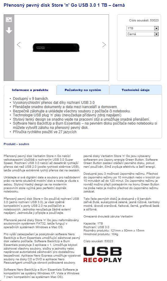 Popis VERBATIM Externí HDD 2TB Store 'n' Go USB 3.0, Black