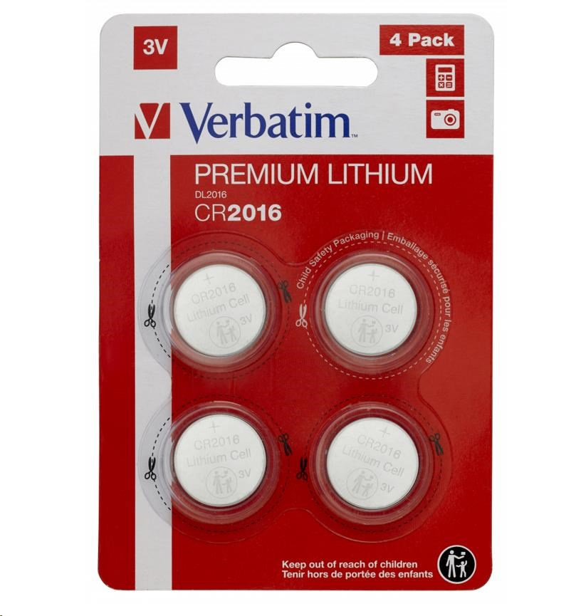 Popis VERBATIM Lithium baterie CR2016 3V 4 Pack
