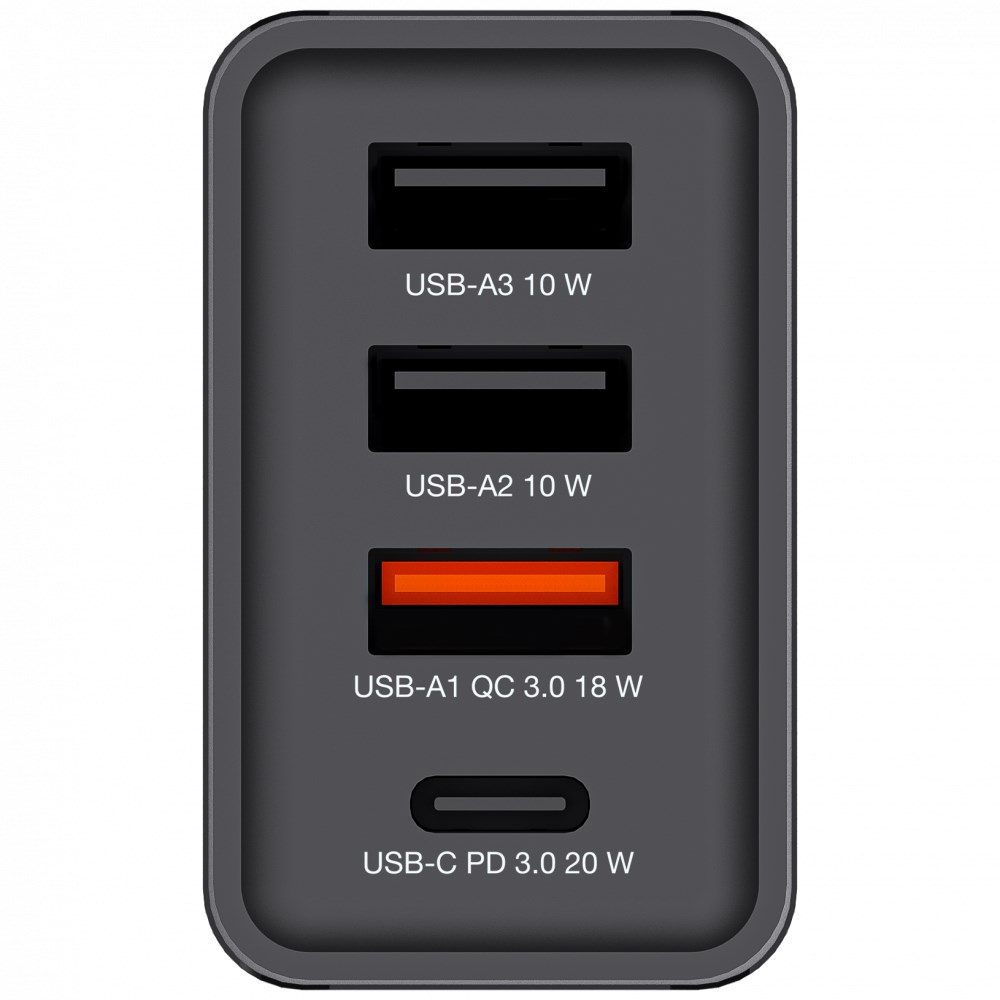 Popis VERBATIM Univerzální adaptér nabíječka CHR-30EU2, 30W, 1x USB-C, 3x USB černá