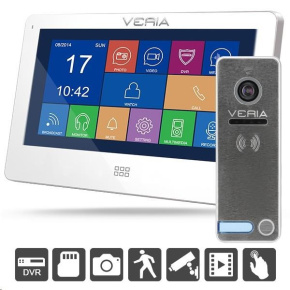 SET vstupní kamerové jednotky VERIA 301 a barevného LCD monitoru VERIA 3001-W vybaveného Wi-Fi připojením s komunikací do aplikace TUYA. K setu lze připojit další dvě externí AHD kamery. 4vodičové propojení..