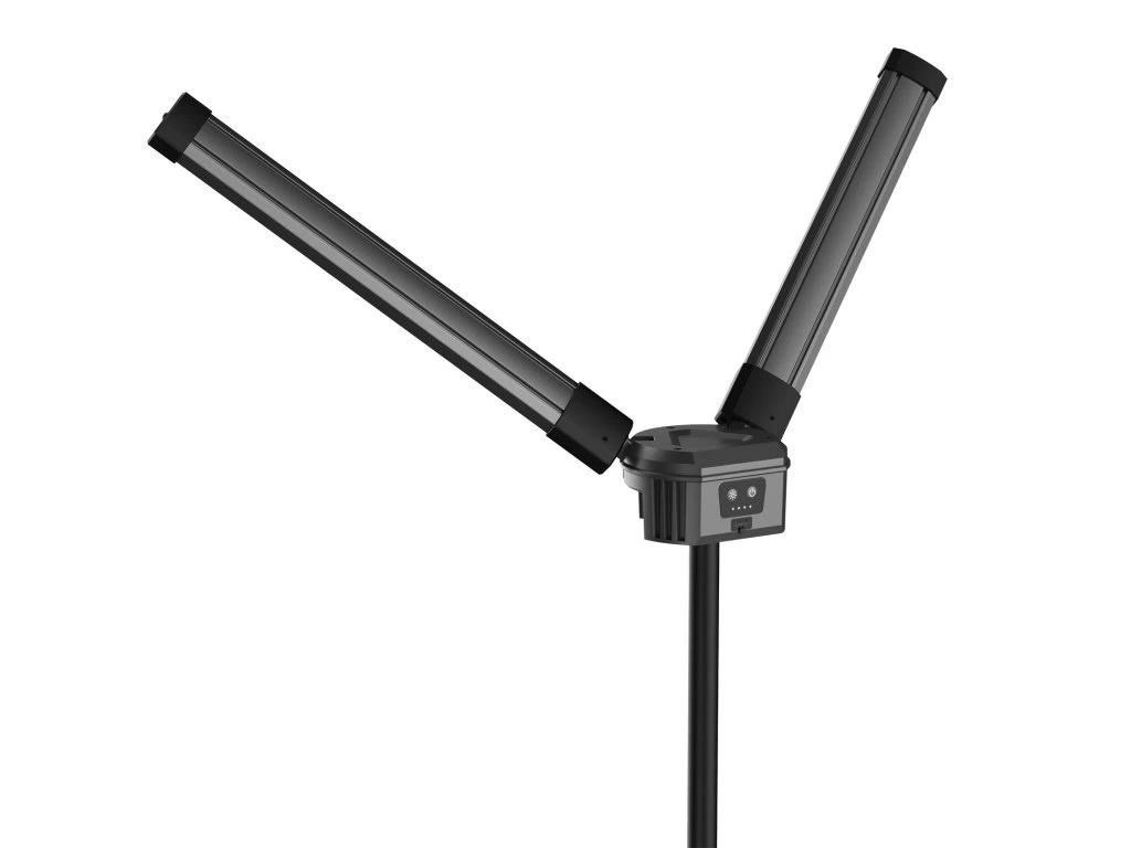 • Flexibilní použití: Světlo lze použít i ve složeném stavu – stačí otočit jednotlivá světla směrem ven a vysunout nožičky pro stabilní postavení.
