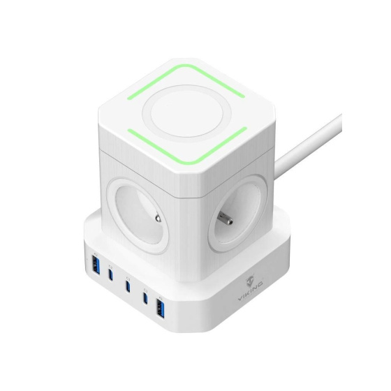 Viking ACT45W kombinuje pět výkonných USB portů (3× USB-C a 2x USB-A), čtyři AC zásuveky a 2m prodlužovací kabel v jednom kompaktním zařízení, které umožňuje současné napájení až 10 zařízení.