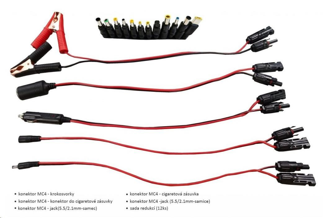 • Velké množství redukcí a konektorů pro neomezené možnosti nabíjení