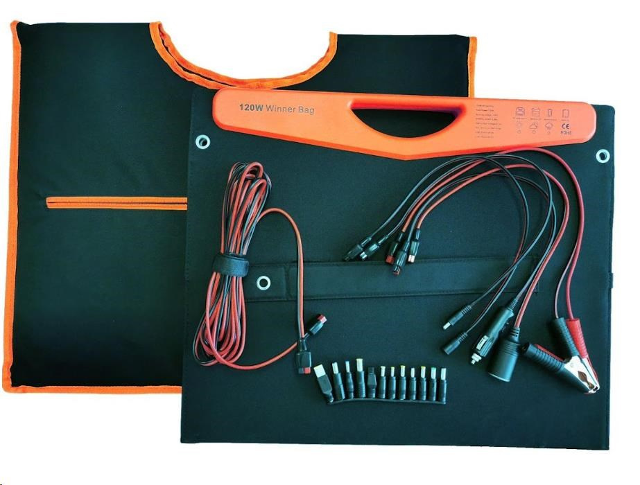 Modul je skládací, lehký a prostorově úsporný, a proto je vhodný pro mnoho použití. Panel lze pomocí integrovaných podpěr postavit pod úhlem 45°, aby byl zajištěn nejlepší možný výkon solárního panelu.Solární panel VIKING WB120, dokáže nabíjet vaše zařízení až do napětí 19,8V a 6,06A!