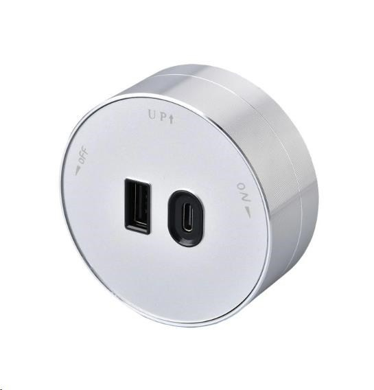 Zásuvkový modul Viking A60 je vybaven jedním USB-A výstupem (5V/2,4A) a jedním USB-C výstupem (5V/3,6A, PD) a je k dispozici ve třech barevných variantách.