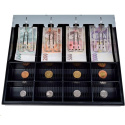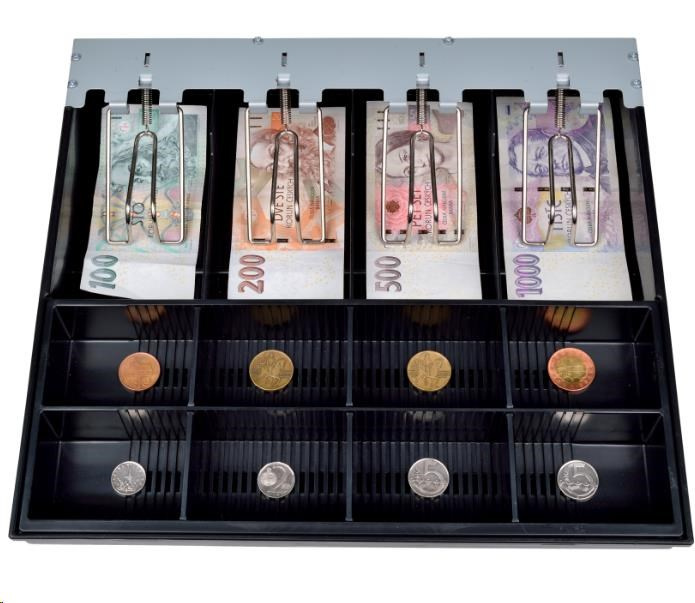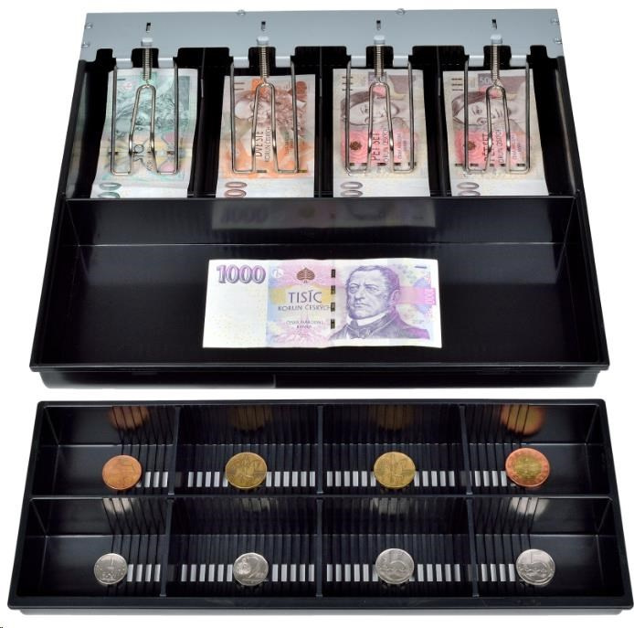 Vyjímatelný mincovník a pořadač bankovek s libovolně nastavitelnými přihrádkami