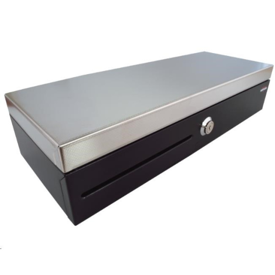 Virtuos pokladní zásuvka flip-top FT-460C2 - s kabelem, se zamykacím krytem, NEREZ víko, černá