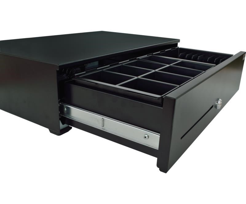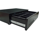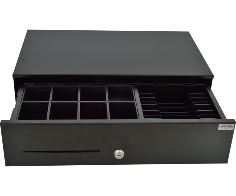 Popis Virtuos pokladní zásuvka SK-500CB s kabelem, kov. pořadač 8/8, 9-24V, černá