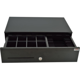 Virtuos pokladní zásuvka SK-500CB s kabelem, kov. pořadač 8/8, 9-24V, černá