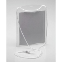 Visačka měkká průhledná z polyprophylenu včetně šňůrky na krk. Uvnitř s kartonem 97×110 mm. Velikost kapsy:114×137 mm, šňůrka bílá, tenká, kulatá, délka 90 cm..