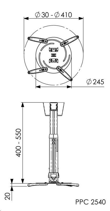 PPC 2540 Professional Teleskopický stropní držák na velký projektor 40-55 cm Teleskopický stropní drVíce