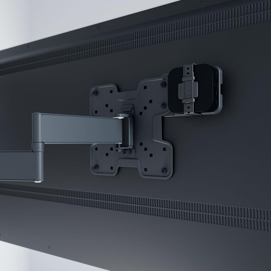Držák mediaboxu lze snadno nainstalovat za televizor třemi způsoby: přímo na televizor, na nástěnný držák televizoru, nebo na zeď. Je vyroben z robustního ABS s pružným univerzálním popruhem, neobsahuje žádné kovové části, a proto nijak neovlivňuje bezdrátový přenos signálu.