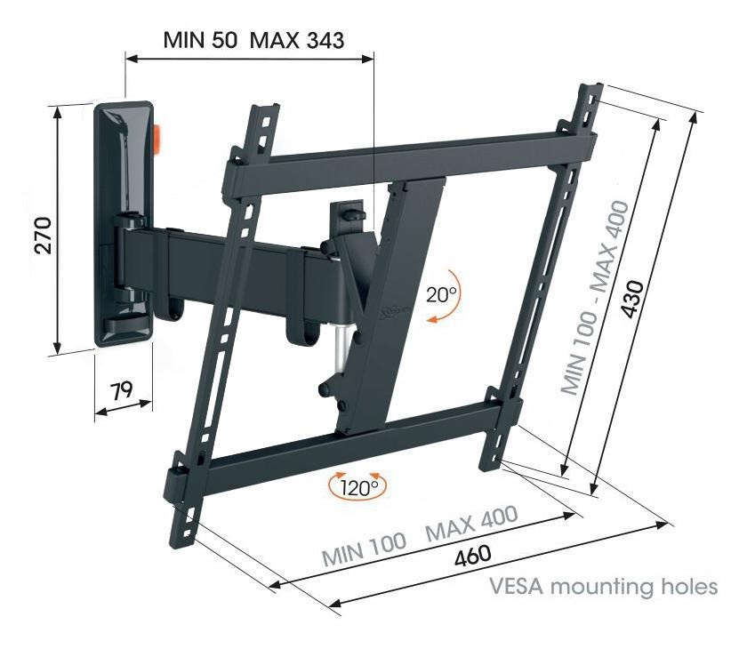 S tímto stylovým nástěnným TV držákem řady COMFORT Full-Motion si vybíráte bezpečnost, design a pohodlí při sledování. Intenzivní používání není pro tento robustní nástěnný držák žádný problém. Díky tomu je ideální pro rodiny s dětmi. Nástěnný držák můžete natočit až o 120° (záleží na šířce TV) a naklonit o 20°. Snadno si tak vytvoříte ideální pozorovací úhel. Nástěnný držák je vhodný pro televizory s úhlopříčkou 32 až 65 palců a hmotností do 25 kg.