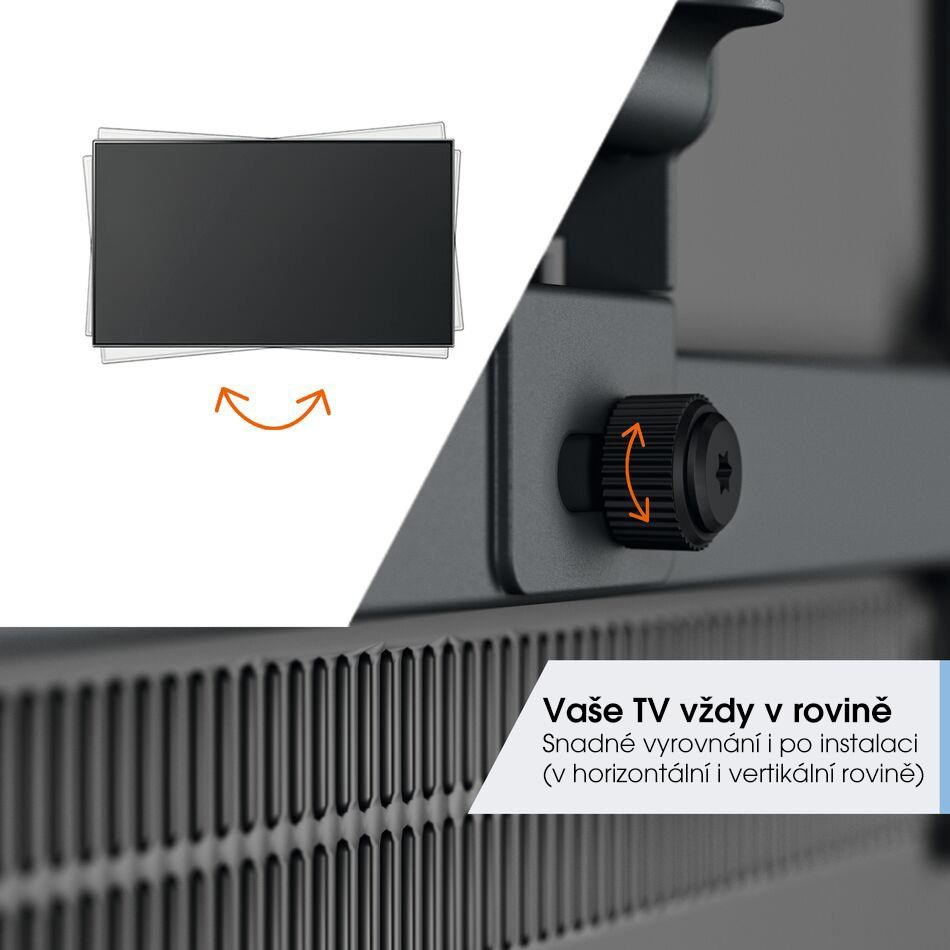 Jedním prstem můžete televizor přesunout do požadované polohy. Nástěnný držák TVM 3443 je vybaven funkcí One-Finger™ Movement. Díky speciálním ložiskům je pohyb nástěnného držáku velmi plynulý a lehký. Pro bezpečné naklápění a fixaci televizoru je držák vybaven jedinečným systémem TiltAnchor™, který uzamkne náklon TV ve svislé poloze.