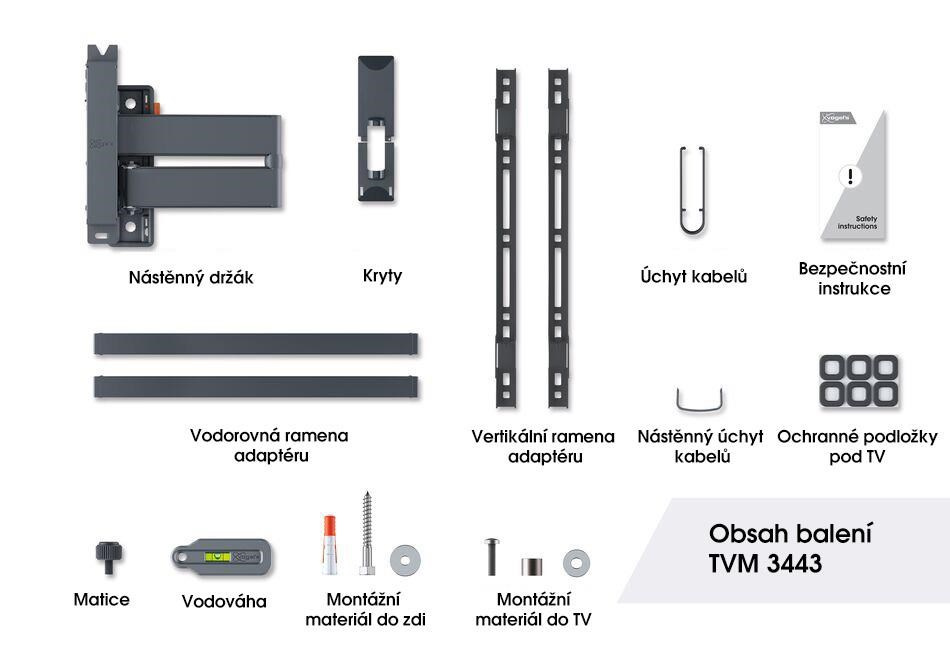 Společnost Vogel's vám maximálně usnadní instalaci držáku. Balení obsahuje vrtací šablonu, šrouby, hmoždinky Fischer® DuoPower, stahovací pásky na kabely a vodováhu. Pomocí naší bezplatné aplikace DrillRight™ AR App si snadno vyznačíte první vrtací otvor a pokyny k instalaci najdete ve stručném průvodci instalací. Nebo si prohlédněte podrobný návod či speciální instalační video online.