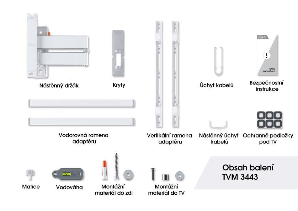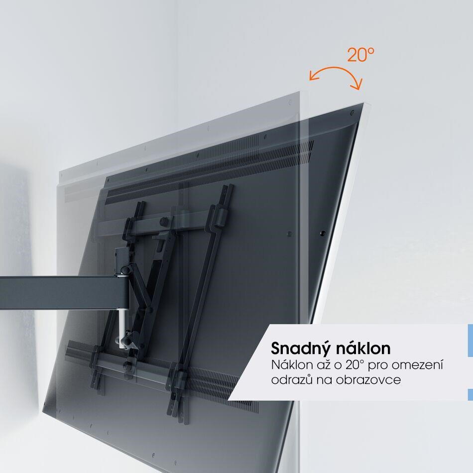 Jedním prstem můžete televizor přesunout do požadované polohy. Nástěnný držák TVM 3443 je vybaven funkcí One-Finger™ Movement. Díky speciálním ložiskům je pohyb nástěnného držáku velmi plynulý a lehký. Pro bezpečné naklápění a fixaci televizoru je držák vybaven jedinečným systémem TiltAnchor™, který uzamkne náklon TV ve svislé poloze.