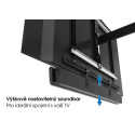 Lze namontovat prakticky na jakýkoliv TV držák. Při natáčení TV se stejně natáčí i soundbar, takže vždy budete mít ten nejlepší obraz bez degradace zvuku.