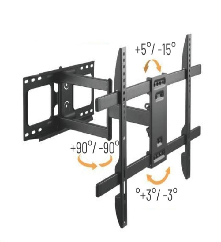 Výsuvný nástěnný držák LPA69-463D je určen pro instalaci TV s plochou obrazovkou s úhlopříčkami od 32“ do 70“. Jeho největší přednostní je robustní výsuvná konstrukce, díky níž unese TV o hmotnosti až 45 kg a zároveň umožňuje nastavit vzdálenost TV od stěny v rozsahu 58 mm až 462 mm, samozřejmostí je pak také velký rozsah polohování. Držák umožňuje snadné naklápění TV v rozsahu +5°~-15°, natočení do stran v rozsahu +90°~-90° a rotaci v rozsahu +3°~-3°, což maximalizuje flexibilitu sledování z libovolného místa v místnosti. Integrovaná svorka na kabely udržuje kabely uspořádané a chráněné.