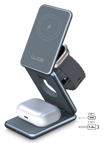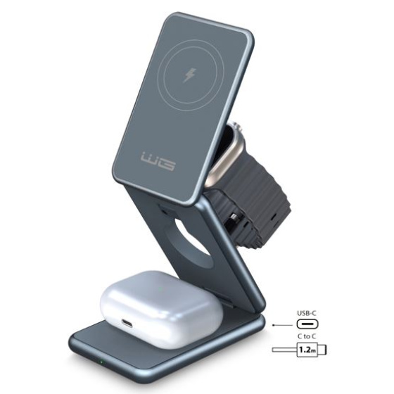 Bezdrátová nabíječka WG 39 Tower of Charge 3v1 (15W+5W+3W) - šedá
