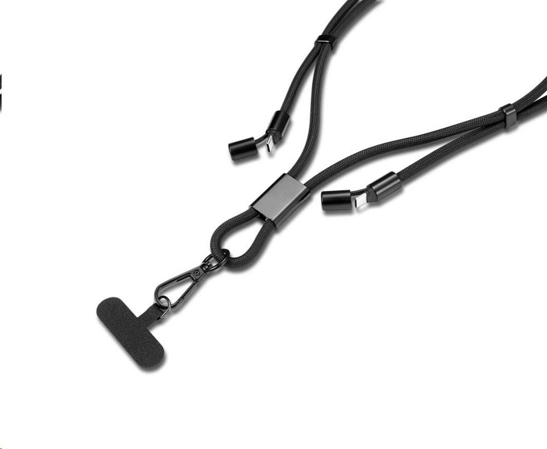 WG Crossbody strap s datovým kabelem Type C – Type C/1.7m/3A/60W/nylon braided/black