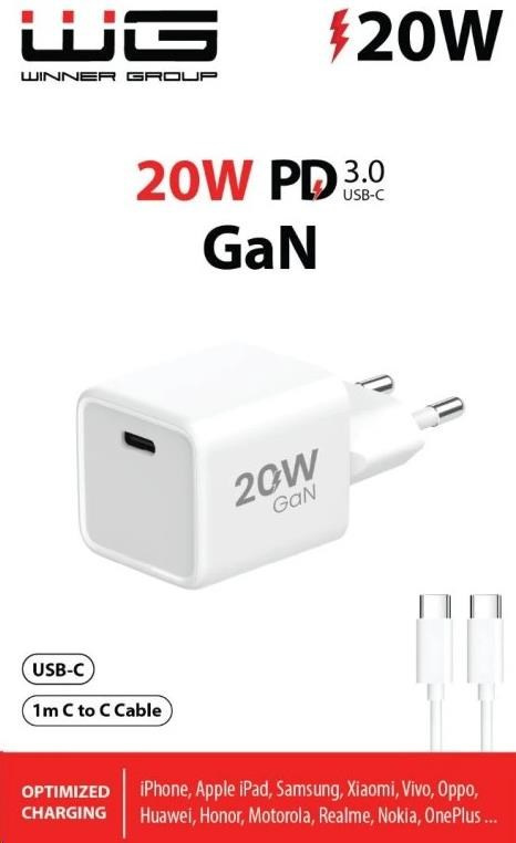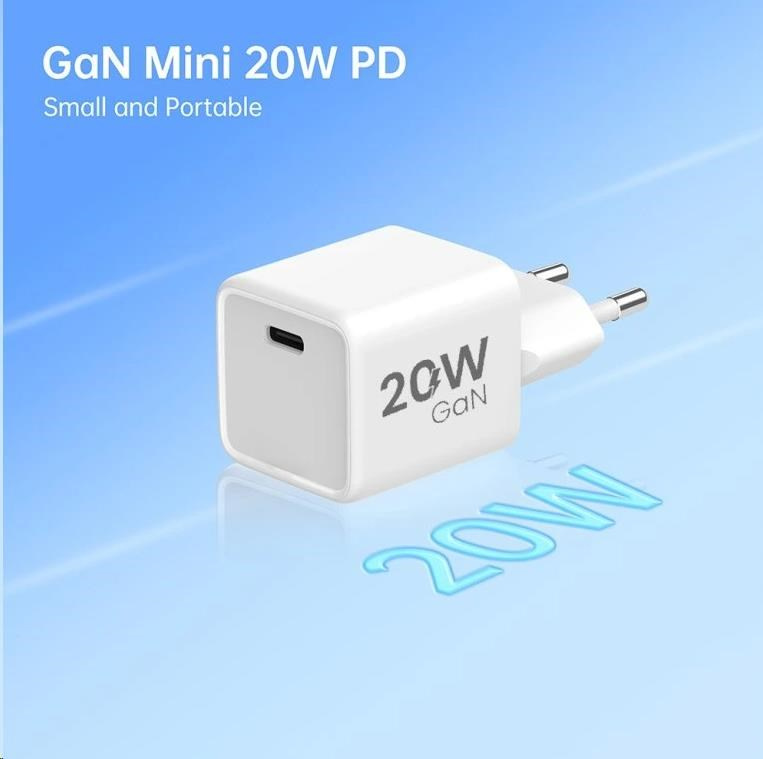 Tato kompaktní a výkonná síťová nabíječka GaN je vybavena jedním portem USB-C a podporuje technologii Power Delivery s výkonem až 20W. Součástí balení je také oboustranný kabel USB-C to USB-C, který umožňuje rychlé a efektivní nabíjení.
