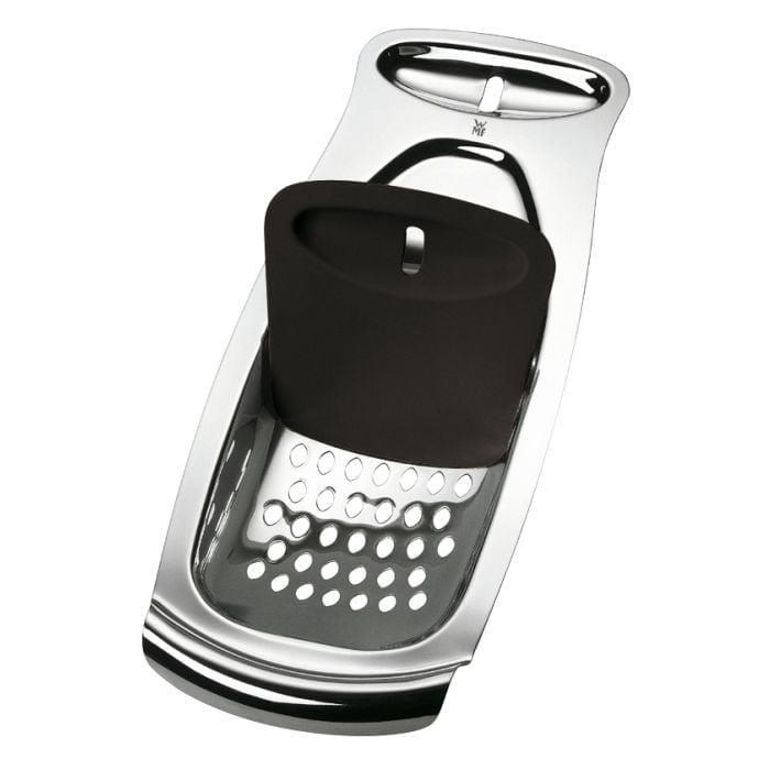 Vychutnejte si lahodné domácí špecle připravené během okamžiku s výrobníkem WMF Spaetzle Maker. Jeho ergonomický design a speciální flexibilní stěrka slibují snadné použití a rovnoměrně tvarované spaetzle během okamžiku. Deska na spaetzle je vybavena širokou rukojetí, která nabízí bezpečné držení, a podpůrnou mřížkou, která se dokonale přizpůsobí hrncům, je vyrobena z nerezové oceli Cromargan® 18/10 a může se pochlubit elegantním, leštěným povrchem, který nikdy nezklame. Je také vhodné pro mytí v myčce nádobí, aby se snadno čistilo. Když se nepoužívá, lze lopatku pohodlně připnout k rukojeti, aby se zabránilo jejímu ztrátě - pro chytré a snadné skladování.